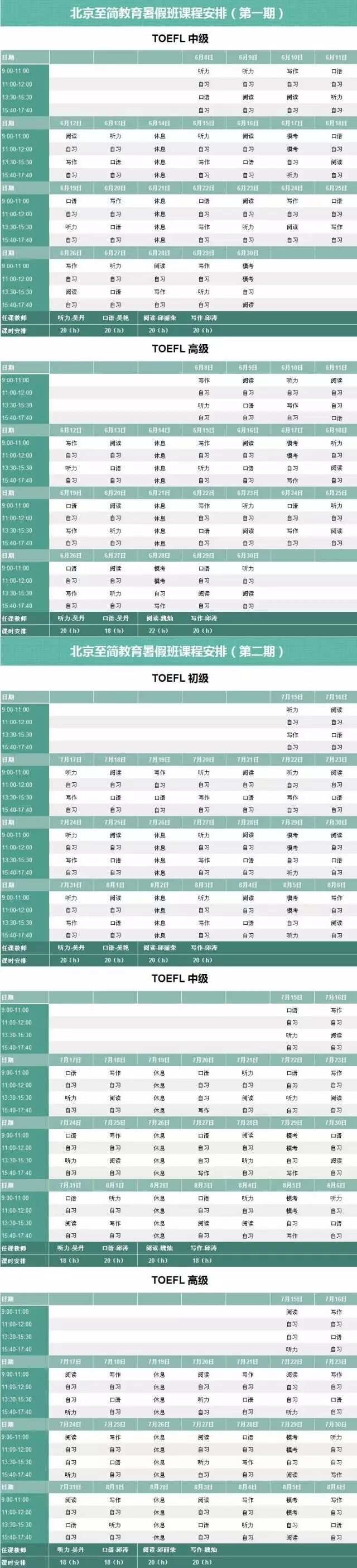 本期暑假班各班级均由至简最优秀的师资团队授课,课下全程助教监督自习,制定阶段性学习目标,帮助同学们在互相促进的舒心氛围下取得托福阶段性胜利。